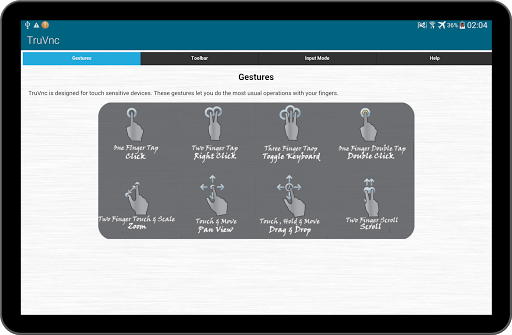 supporta il telecomando dall'applicazione TRUVNC installata su altri dispositivi Android sulla stessa rete WiFi.