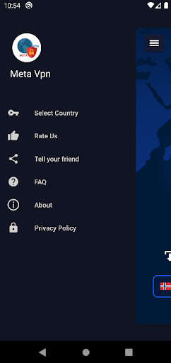 Meta VPN è un'applicazione VPN molto veloce e sicura con larghezza di banda illimitata e lotto di server sicuri in questa app VPN Quando fai clic sull'opzione Seleziona è possibile visualizzare gli elenchi dei server VPN.