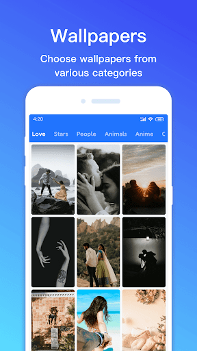● Sfondi: questa funzione consente di impostare sfondi con un solo clic. Puoi scegliere da un ricco elenco di categorie e selezionare i migliori sfondi di tua scelta, senza doverli ritagliare.