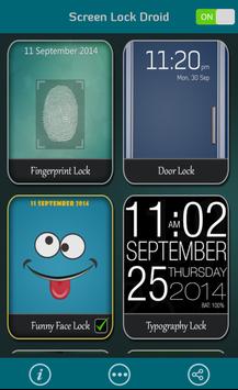 • Lock your phone screen using door lock, finger print, funny face, zip lock and many more animations. With Screen Lock Droid, you can choose any screen lock from the collection.