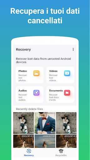 Ogni volta che elimini i suddetti tipi di dati, puoi utilizzare questa app per recuperarli immediatamente, senza bisogno di root