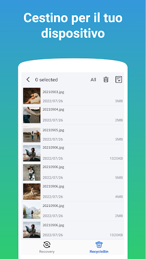 Hai mai cancellato accidentalmente foto e video importanti dal tuo telefono? Installa Mobispeedy per ottenere un cestino o un cestino sul tuo dispositivo per ottenere la funzione di recupero dei file. I file eliminati verranno conservati in Mobispeedy. puoi facilmente recuperare i file cancellati in qualsiasi momento e ripristinarli sul tuo dispositivo.