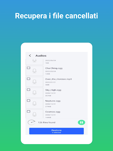 Recupero audio: recupera la musica o le registrazioni che hai eliminato per errore.