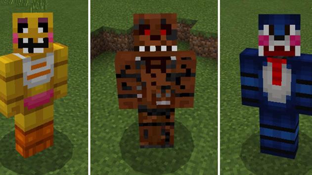 Five Nights at Freddy's Mods for Minecraft PE bring action packed FNAF characters and gameplay in your single player and multiplayer mcpe. 1-Click install enables installation of FNAF mods directly in Minecraft Pocket Edition game. Freddy Mod FNAF App is packed with Five Nights at Freddy's 3 addons;- Five Nights At Freddy’s AddonThis fnaf addon replaces some of the mobs in-game with the animatronics from Five Nights At Freddy’s which is a popular horror game series. The models for the animatronics are quite well designed and each one appears to have a unique set of behaviors. Some mobs include;1. Old Chica (Wither Skeleton)2. Old Freddy (Husk) 3. Old Bonnie (Zombie)4. Balloon Boy (Pig) 5. Foxy (Stray) 6. Puppet (Enderman)- FNAF Pets AddonThis is an fnaf addon which brings the animatronics in Five Night at Freddy’s to Minecraft Pocket Edition. You can tame them and keep them as your pets or fight any of them or the animatronic boss called Ennard. There are five different resource packs to choose between. Download and use the one based on which characters you want in your game.Ennard (Boss, replaces the enderman, exists for all packs) --> FNaF Friend Resource Pack: