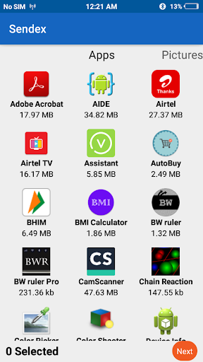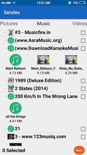 2. È possibile selezionare app, immagini, musica, video e file (o cartelle) da inviare dall'app stesso.
