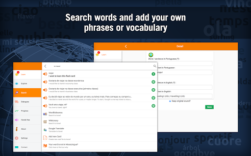 - 3000+ flash cards of vocabulary and phrases in Brazilian Language, including audio pronunciations by native speakers