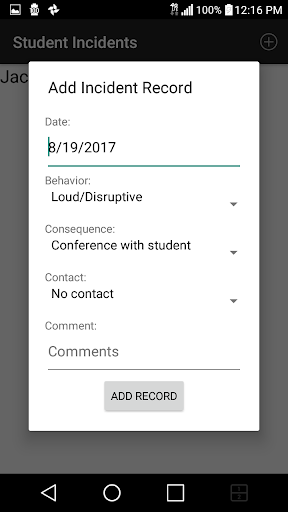 L'app degli incidenti degli studenti ti consente di mantenere la tua sanità mentale come insegnante! Creato da un insegnante per altri insegnanti, questa app consente di documentare gli incidenti degli studenti per la conformità / documentazione. Un altro vantaggio è la coerenza nella gestione della classe documentando ciò che deve accadere dopo nel tuo piano comportamentale per gli studenti.