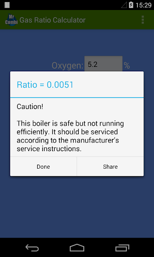 If the boiler is running efficiently there may be no need to service it. Simply test the boiler with your analyser and obtain the oxygen, carbon monoxide and carbon dioxide values. Input the values from the analyser into the Gas Ratio Calculator, the CO/CO2 ratio will be calculated and advice also given on whether the boiler should be serviced or not.