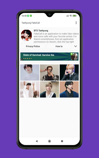 Con questa applicazione puoi fare scherzi ai tuoi amici come se fossi al telefono del tuo artista preferito, BTS V - Taehyung. Puoi anche metterti in mostra con i tuoi amici scattando screenshot durante una videochiamata e condividendoli sui tuoi social media come Facebook, Instagram, WhatsApp, Twitter e altri.