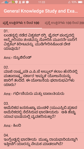 Kannada General knowledge Study and Quiz (Exam) Application,