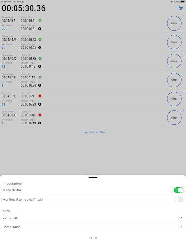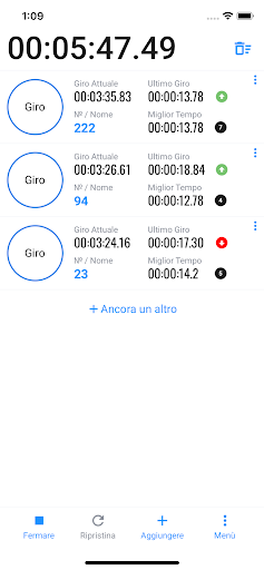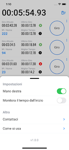 – Mostra i tempi attuali, i migliori e dell'ultimo giro