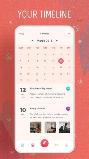 Questo è un diario multi-piattaforma, diario, note app progettato per registrare le vostre attività, eventi quotidiani, appuntamenti, esperienze, pensieri, sentimenti, i segreti e le idee in tutta i dati al giorno e sincronizzati su tutti i dispositivi Android. Ti aiuta a organizzare le voci o le note del diario / diario giornaliero del passato nel modo più semplice.