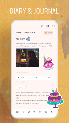 Diary with Audio, Images and cute Stickers...