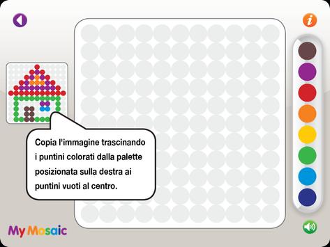 My Mosaic aiuta a sviluppare abilità di percezione visiva e coordinamento visivo motorio. Questo gioco necessita ed aiuta a sviluppare perseveranza, diligenza e accuratezza. Il gioco è adatto a bambini di età pari o superiore a 4 anni.