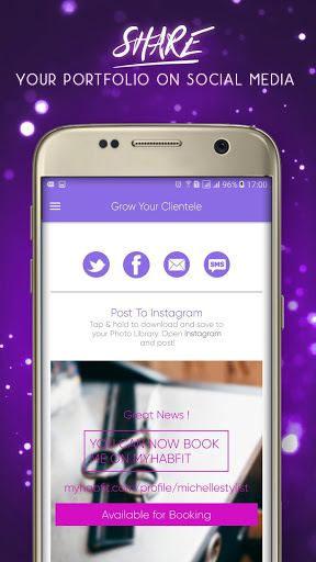 - SHARE your portfolio to anywhere and grow your business. You can even create your personalized profile image that you can use on your Facebook and Instagram pages.