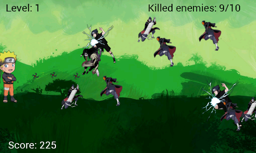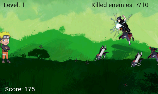 Help Naruto against sasuke and other enemies!!Very addictive game with different levels and difficulties...Try it!INSTRUCTIONS: Click the screen to throw shurikens at your enemies.Tested in Samsung Galaxy SII. Please let me know if you have problems with other phones. Comments and suggestions are more than welcome.Keywords: naruto, sasuke, anime, game, touch screen, throw, shuriken, addictive----- Disclaimer -----All characters, names places, and events and all other aspects are the property of their respective owners. All trademarks and copyrights are the property of their respective owners. We make no claim to and do not have any rights to any of the foregoing. In creating this unofficial app, we assert its rights under the "fair use" doctrine pursuant to United States Copyright law and its equivalent in all jurisdictions. If you feel there has been a contravention of your propriety rights please contact us.tags naruto vs sasuke game for android game android naruto vs sasuke, naruto, naruto vs sasuke game for android free download naruto vs sasuke game android.