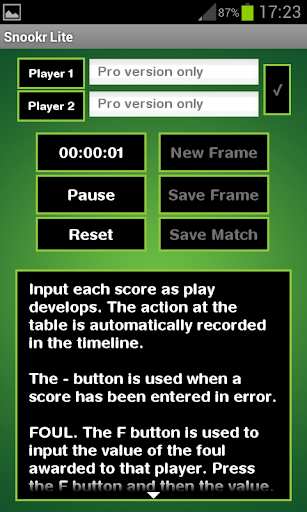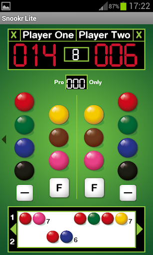 Versione Leggero di Snookr (l'apice della apps punteggio snooker). Funzionale pulito e compatto. A scorrevoli record della timeline l'azione al tavolo e le statistiche vitali sono raccolti alla fine.