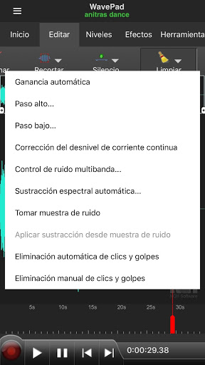 WavePad, editor de audio y música es un editor de audio y música profesional con todas las funciones. Con WavePad puedes editar y grabar música, voz y otras grabaciones de audio. Puedes editar archivos de audio con herramientas como cortar, copiar y pegar. También puedes agregar efectos de audio, incluyendo eco, amplificación y reducción de ruido.