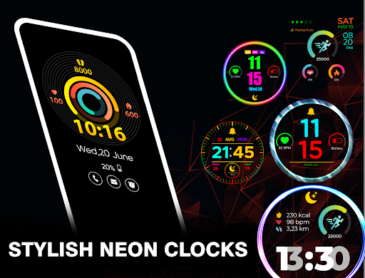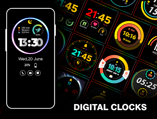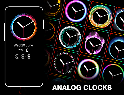 The clock app with analog clock styles including best and rotating dials animations. The analog clock will look like an amazing night clock on the screen. The different clock will be in the clock app gallery to set on the screen display wallpaper and lock screen as well. The clock face with smart clock and watch dials in the digital and analog clock section.