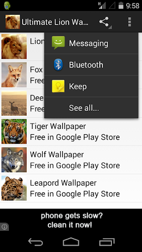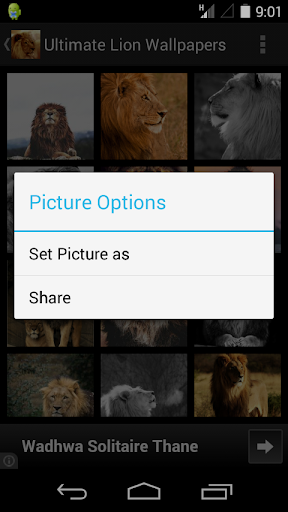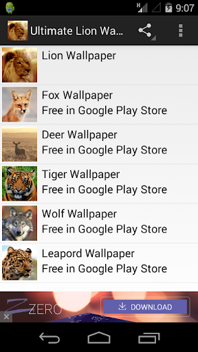 In this application you see the bunch of lion wallpaper which can be share and set as wallpaper.
