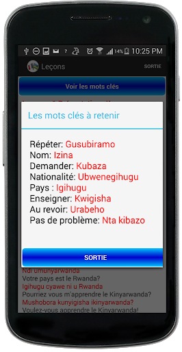 Le cours est destiné aux francophones qui veulent apprendre le Kinyarwanda. Vous devez donc comprendre le français pour mieux exploiter cette application.