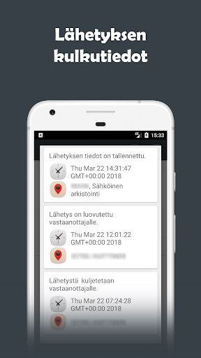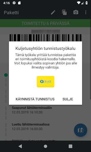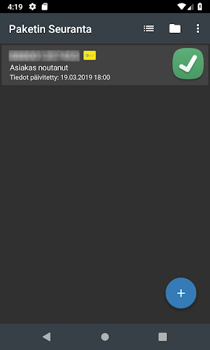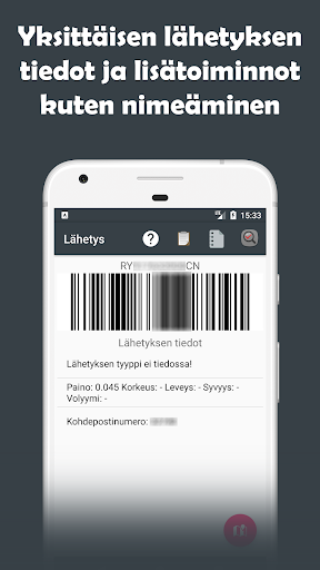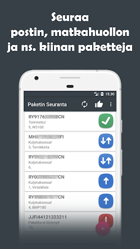 Applicazione di tracciamento del pacchetto sicuro e gratuito con supporto per molti corrieri diversi. Monitoraggio facilmente da un'applicazione con tutte le funzioni necessarie dei codici a barre da archiviare. L'applicazione di tracciamento dei pacchetti si basa sulla logica Completamente app e l'applicazione non effettua inviti ai server dello sviluppatore. Tutte le tue informazioni sono memorizzate sul telefono, nessuna informazione è condivisa in avanti.