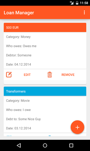 With Loan Manager you can easily track everything you lend to someone and you can also keep track of the stuff you borrowed.