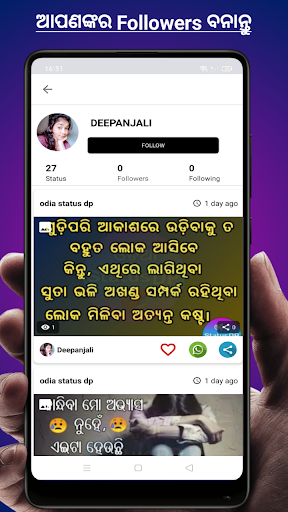 If you are searching for an app for Status downloader and Status maker in odia language, then this Odia Status DP App will be best suit for both for Whatsapp and Facebook.