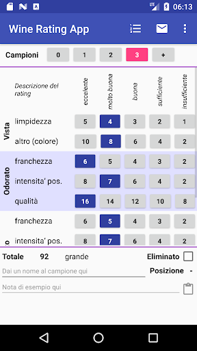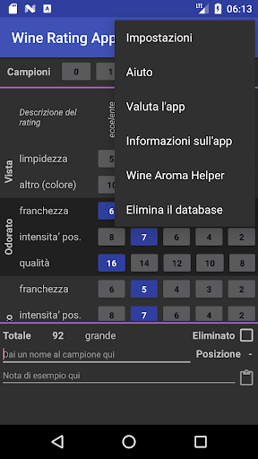 La valutazione del vino durante la degustazione è adatta agli appassionati di vino. Concentrati sulla degustazione di vini e lascia che l'app ti aiuti a calcolare il punteggio. Usa un sistema internazionale a 100 punti per la valutazione del vino. Tali valutazioni sono utilizzate nelle competizioni vinicole.