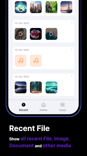 ● Mostra tutte le recenti Aggiungi immagine, video, audio, APK, documento e altro file.
