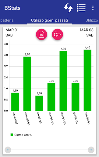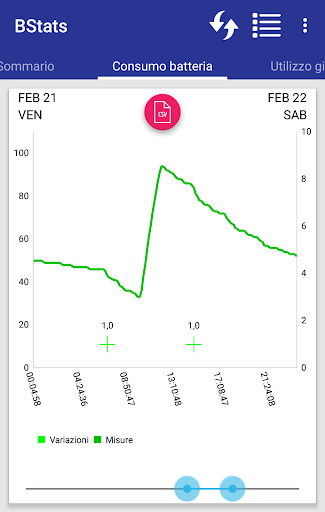 Attraverso semplici grafici puoi visualizzare le statistiche batteria