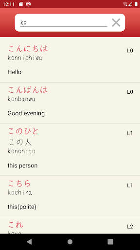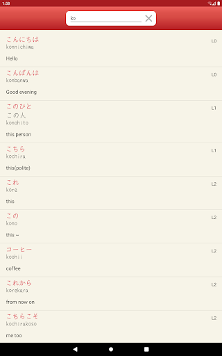 Easy to search words for beginners. You can search words from Kanji, Kana, Romaji, or Translation.