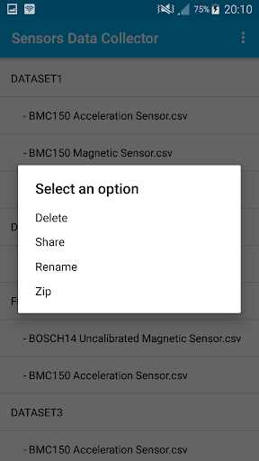 I file corrispondenti ai set di dati raccolti possono essere rinominati, zippati, condivisi o cancellato.
