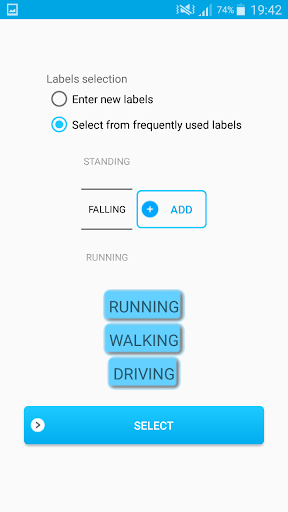 Sensori Data Collector consente di raccogliere dati da vari sensori dal dispositivo (incluso accelerometro, magnetometro, giroscopio ecc.) E ti consente di etichettare / annotare questi dati in tempo reale quando lo raccoglie. I dati raccolti vengono salvati nei file CSV sulla memoria locale del dispositivo e possono essere facilmente utilizzati per allenamento algoritmi di apprendimento della macchina o per altri compiti di intelligenza artificiale.