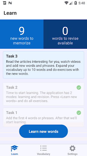 Also in Lingain there is a smart revision mode that will not let you forget the words learned recently.
