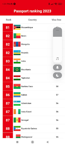 Consideriamo l'indice di Henley Passport (Abbreviation: HPI) che la classifica è una classifica globale dei paesi secondo la libertà di viaggio goduto dai detentori di quel paese ordinariopassaporto per i suoi cittadini.