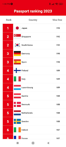 Il contatore del passaporto è un'applicazione che fornisce la classifica dei passaporti per il 2023. Scopri i passaporti più potenti del mondo e il grado del tuo passaporto.Vedi i paesi in cui puoi partecipare senza richiedere un visto.