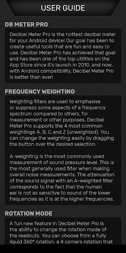 - Start o Stop Decibel Meter Pro in qualsiasi momento.