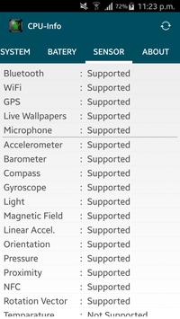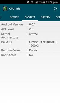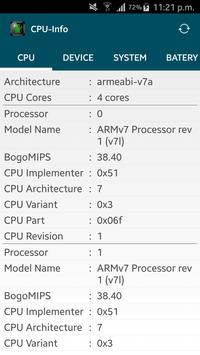 Root-Checker is a superior app that show CPU-info , Mobile, battery & sensors.