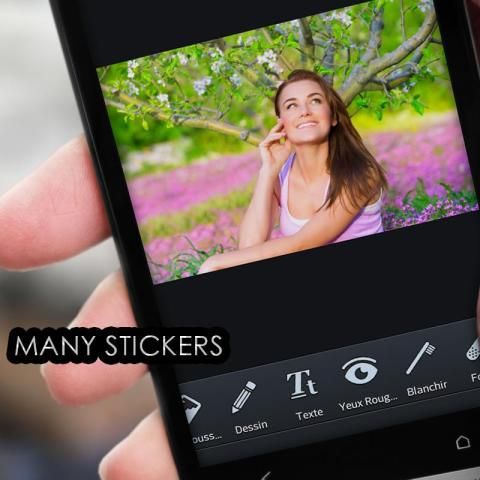 Choose them from our library of stickers. or upload them on the internet right from the application if you want to make a christmas or a tatoo photo booth for example ....