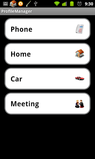 Profile Manager enable you to define as many profiles as you want: Car, Home, Meeting, Bicycle, Phone. For each profile you can select the settings that you want.