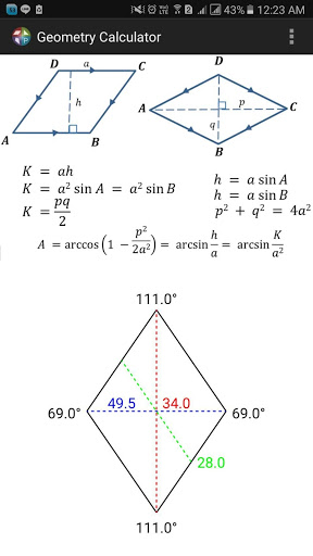 With this app, you can obtain the remaining parameters of geometry shapes based on your given input. An image of a shape will also be illustrated based on your input.