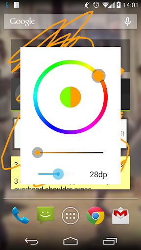 ScreenDraw is a service that gives you an icon, which will always be visible (unless you stop ScreenDraw via the notification menu). When you click on the icon, you enable drawing mode and you can draw anywhere on your screen with different colors via the color picker and different stroke widths.