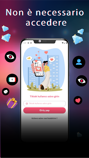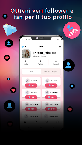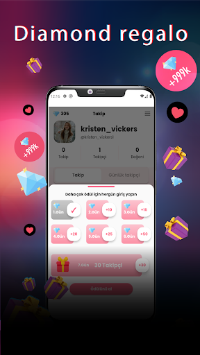 Accedi ogni giorno e guadagna diamanti regalo, segui gli utenti, guadagna diamanti illimitati e usa i diamanti che guadagni per ottenere follower e Mi piace.