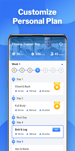 Fitness Trainer Pro ha una funzione più personalizzata per te. Puoi ottenere il tuo piano di allenamento speciale in base al tuo livello di allenamento, allo scopo di allenamento e alla tua amata frequenza di allenamento. Il piano sarà unico per te stesso.