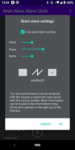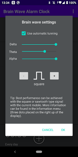 Tip: If you are new to the app and you are not fully comfortable with brain wave alarm, just set up this alarm clock 5 min before your regular alarm clock and you will see that right after the first wake up process, you will soon turn off your old alarm clock forever.