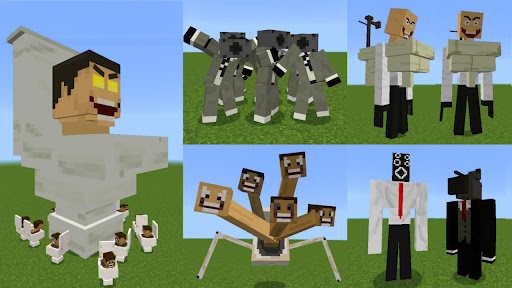 Raccolta di modcellette toilette Skibidi Top per Minecraft Pocket Edition.Incontra i personaggi del famoso meme igienico di Skibidi di YouTuber Dafuq.All'interno di questa mod, incontrerai un altoparlante Titan, un grande bagno, un cameraman, un parlatore e altri.
