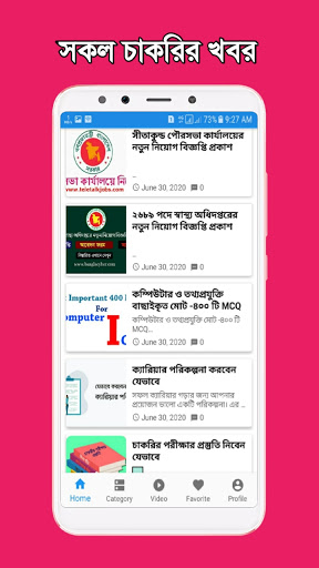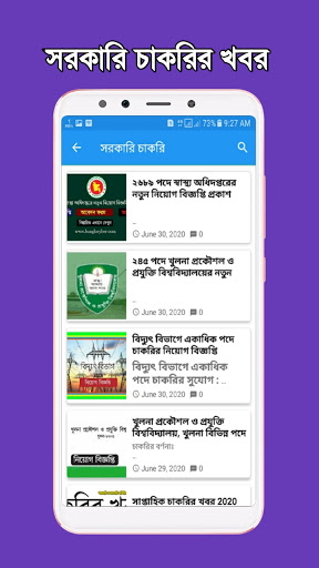 ১. প্রতিনিয়ত আপডেট চাকরির খবর পাবেন এই এপটিতে। বিভিন্ন বিশ্বস্ত পত্র-পত্রিকা ও উৎস এবিং অনলাইন থেকে আমরা এগুলো চাকরির খবর সংগ্রহ করে আপনাদেরকে উপস্থাপন করি।