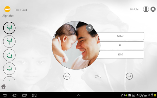 4) The app shows numbers and letters with picture and voice.