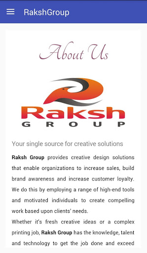 Raksh Group is a best web solutions provider company at Surat, India. The state-of-art development center helps to serve our worldwide clients. We are specialized in customized website, online marketing & email solutions.Raksh Group provides creative design solutions that enable organizations to increase sales, build brand awareness and increase customer loyalty. We do this by employing a range of high-end tools and motivated individuals to create compelling work based upon clients’ needs.
